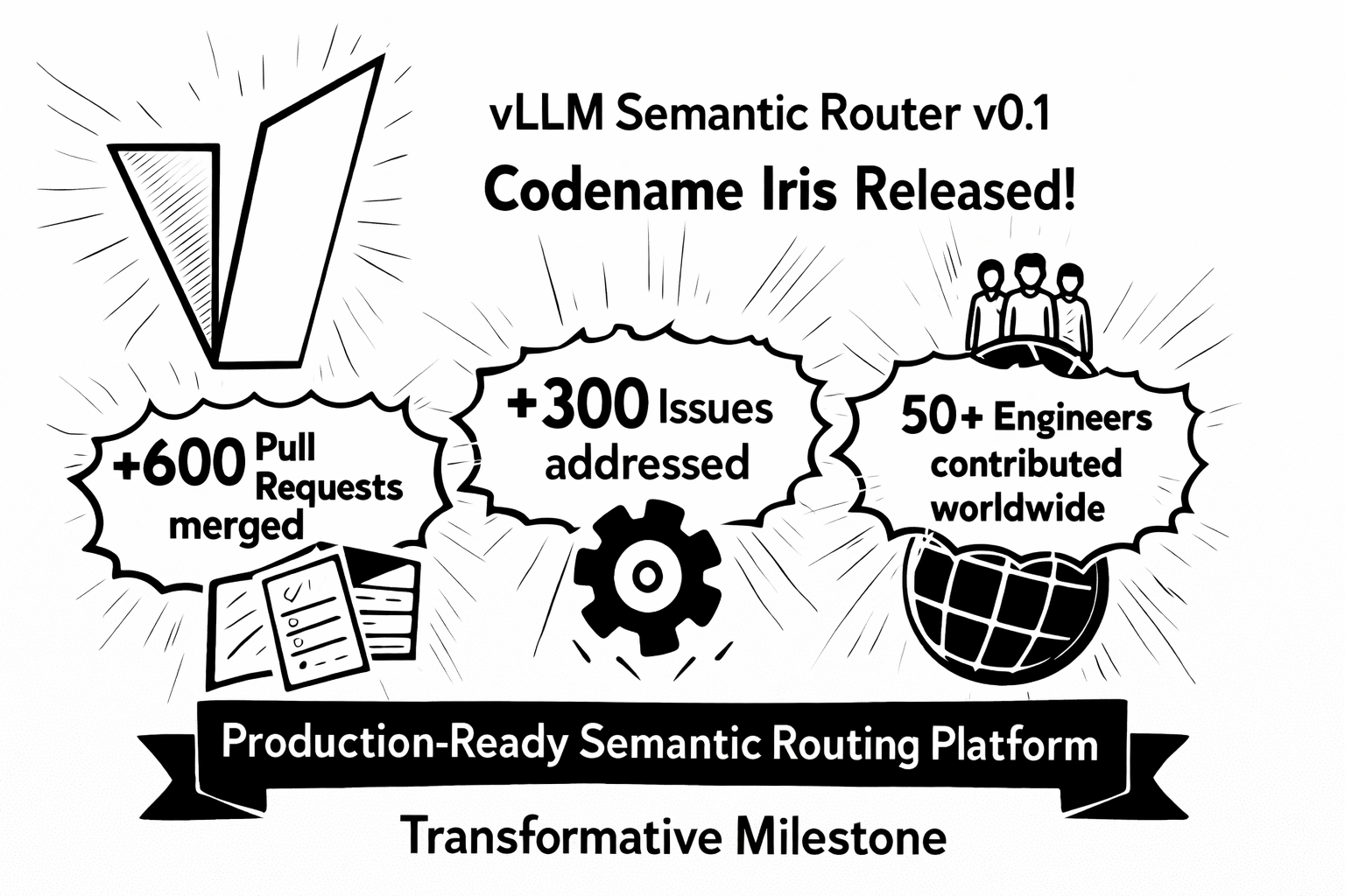 We are thrilled to announce the release of vLLM Semantic Router v0.1, codename Iris—our first major release that marks a transformative milestone for intelligent LLM routing. Since our experimental launch in September 2025, we've witnessed extraordinary community growth: over 600 Pull Requests merged, 300+ Issues addressed, and contributions from more than 50 outstanding engineers worldwide. As we kick off 2026, we're excited to deliver a production-ready semantic routing platform that has evolved dramatically from its origins.